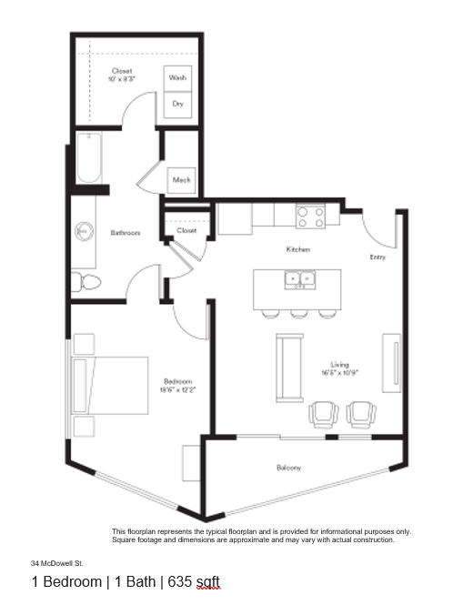 Starting At: $1,235.001 Bed 1 Bath 635 SQ.FT.