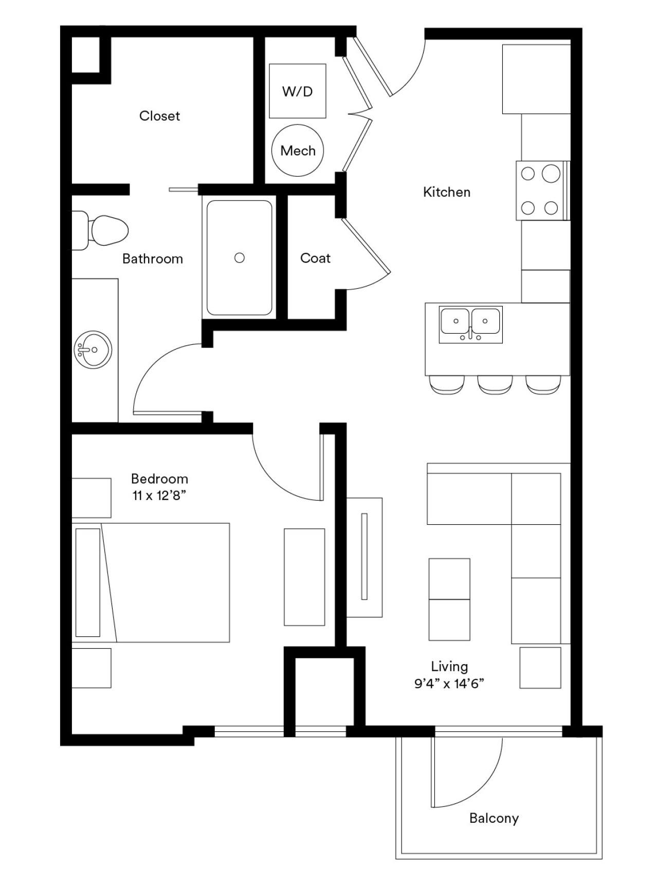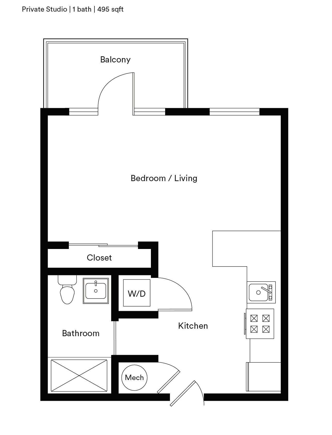 Starting At: $1,035.00Studio 1 Bath 495 SQ.FT.