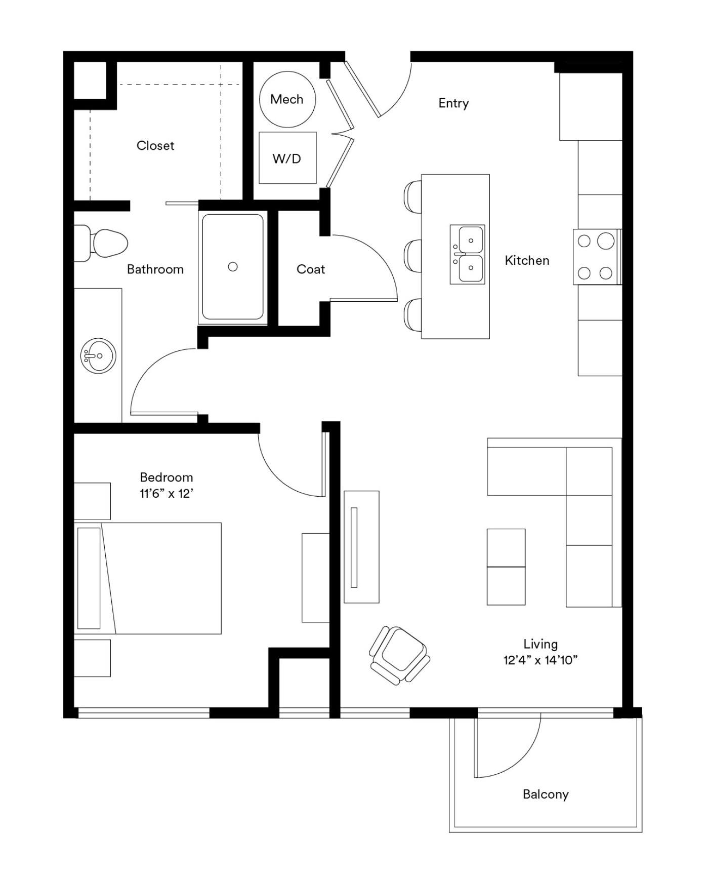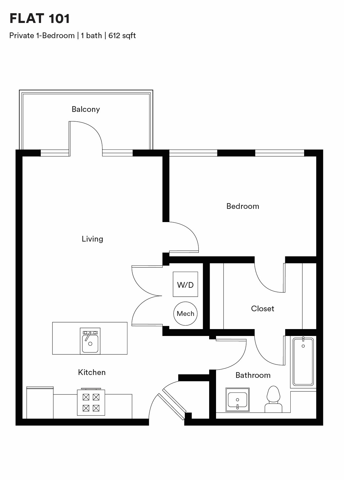 Starting At: $1,238.001 Bed 1 Bath 612 SQ.FT.