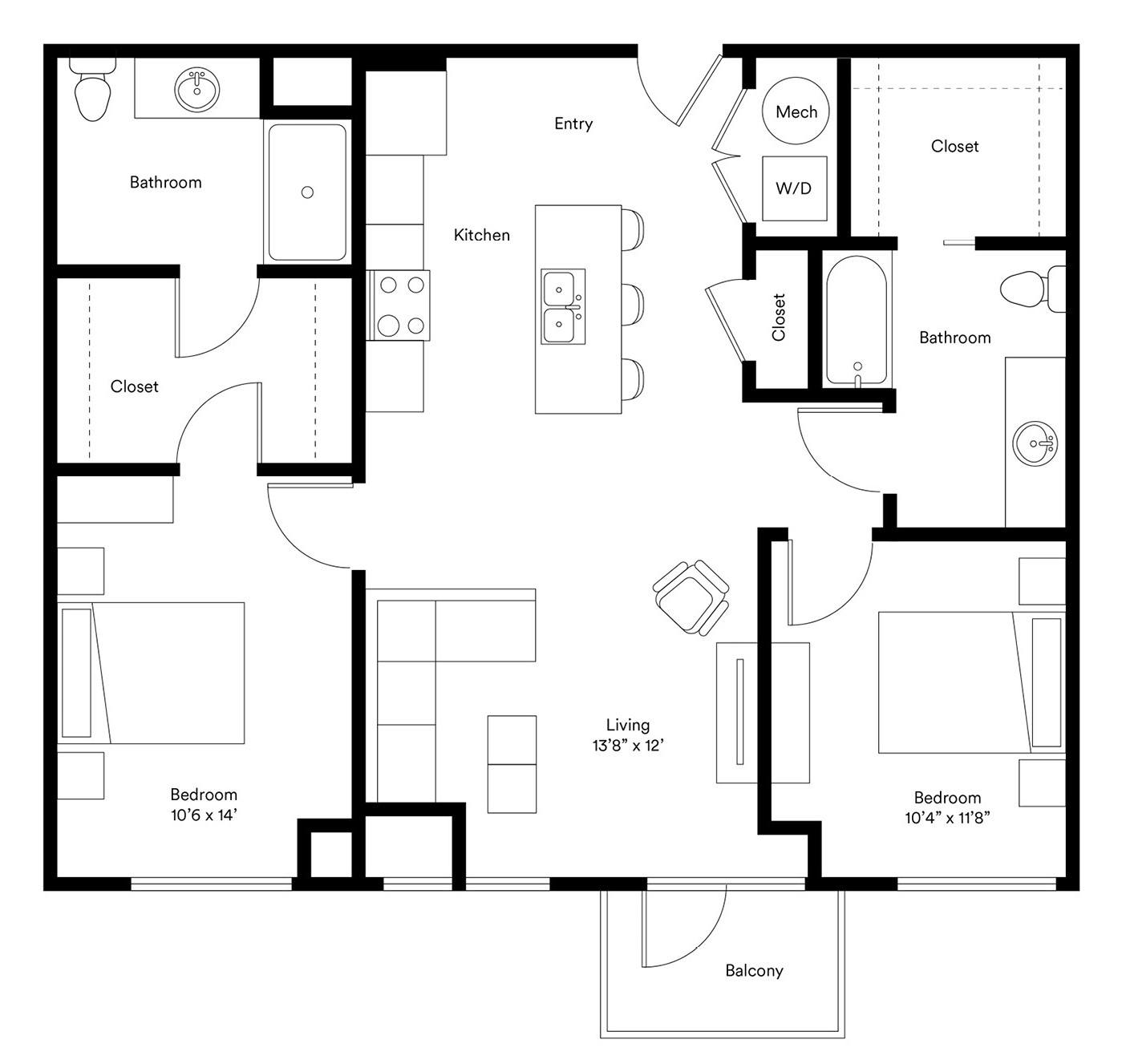 Starting At: $1,845.002 Beds 2 Bath 1010 SQ.FT.